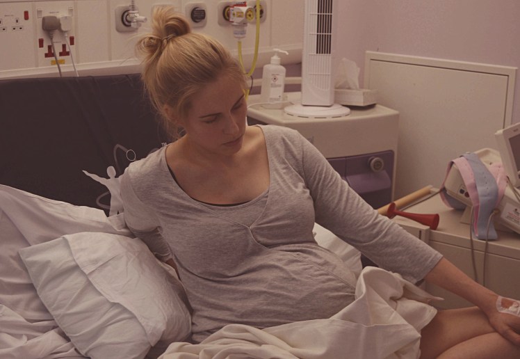 I couldn’t talk, I couldn’t look at anyone, was given some gas and air, thank god. I was also put on the antibiotics drip which was horrible because I needed both of my hands – rubbing my knuckles over my hips and back was the only thing that helped. The midwife came to check where I’m at and all of a sudden I was around 8cm and needed to be moved to the delivery suite. So what felt like forever (in reality probably 10-15 mins) they moved me to the delivery room.