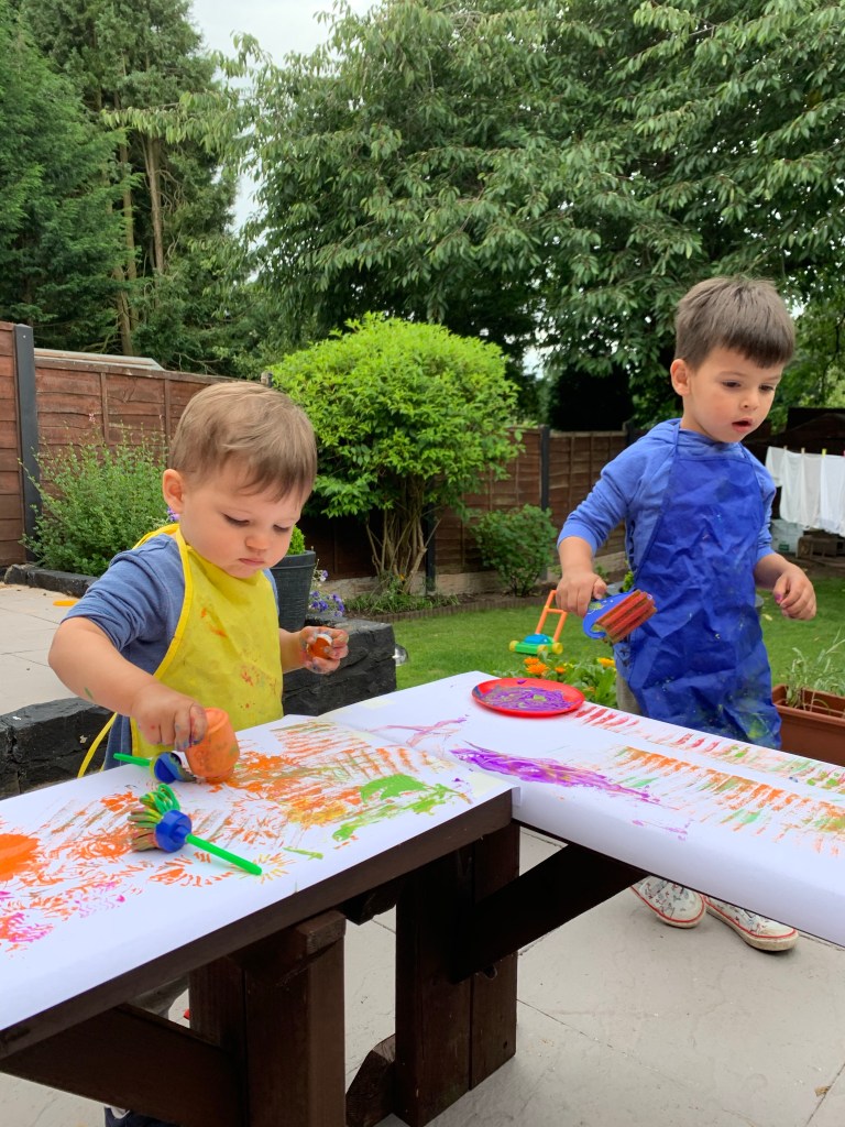Painting. Indoors and outdoors. Googled all sorts of toddler activities from which a lot were still very tricky to do cause of the age difference between these two.